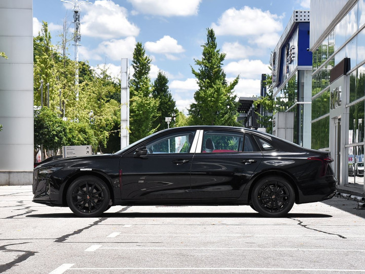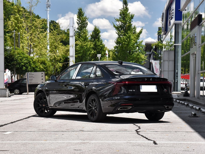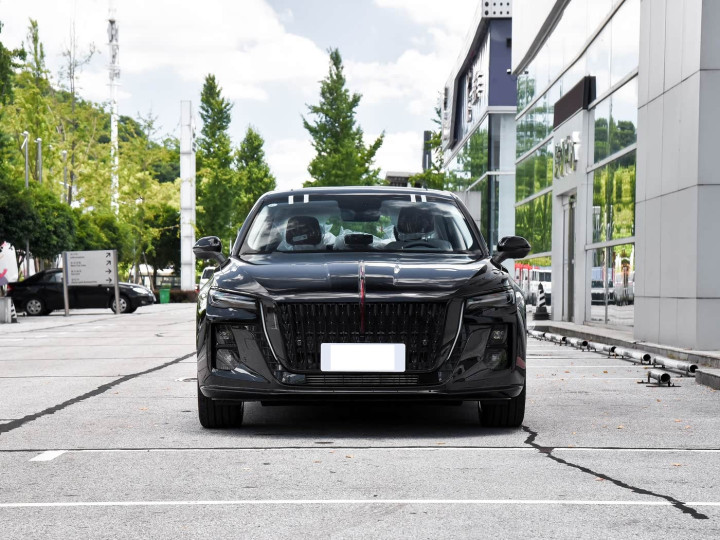 我们首先来看新车的外观设计方面,新车前脸采用第三代直瀑式进气格栅,12根镀铬饰条比H9减少2根却更显精炼。创新之处在于可发光红旗LOGO与贯穿式灯带的组合——启动时动态流光效果如同展开的卷轴,夜间辨识度超越同级竞品。分体式大灯组上方为日行灯带,下方矩阵式主灯支持自适应远近光,照射距离达180米。尤其是全新的玄影版采用全黑中网+红色卡钳组合,格栅内部暗藏蜂窝纹理。前包围两侧的獠牙式导流槽并非装饰,实测可降低5%风阻系数。值得注意的是,引擎盖与前翼子板的接缝公差控制在3.5mm以内,工艺标准看齐豪华品牌。